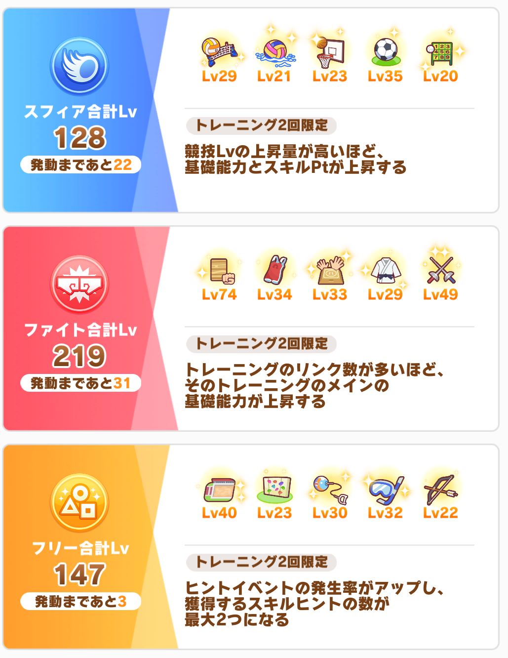 ジュニア期は絆あげヒント稼ぎ競技レベル整理