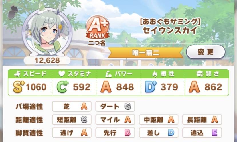 これにいかに中盤スキル(逃げコーナーとか尻尾上がりとか)と終盤固有を載せられるか