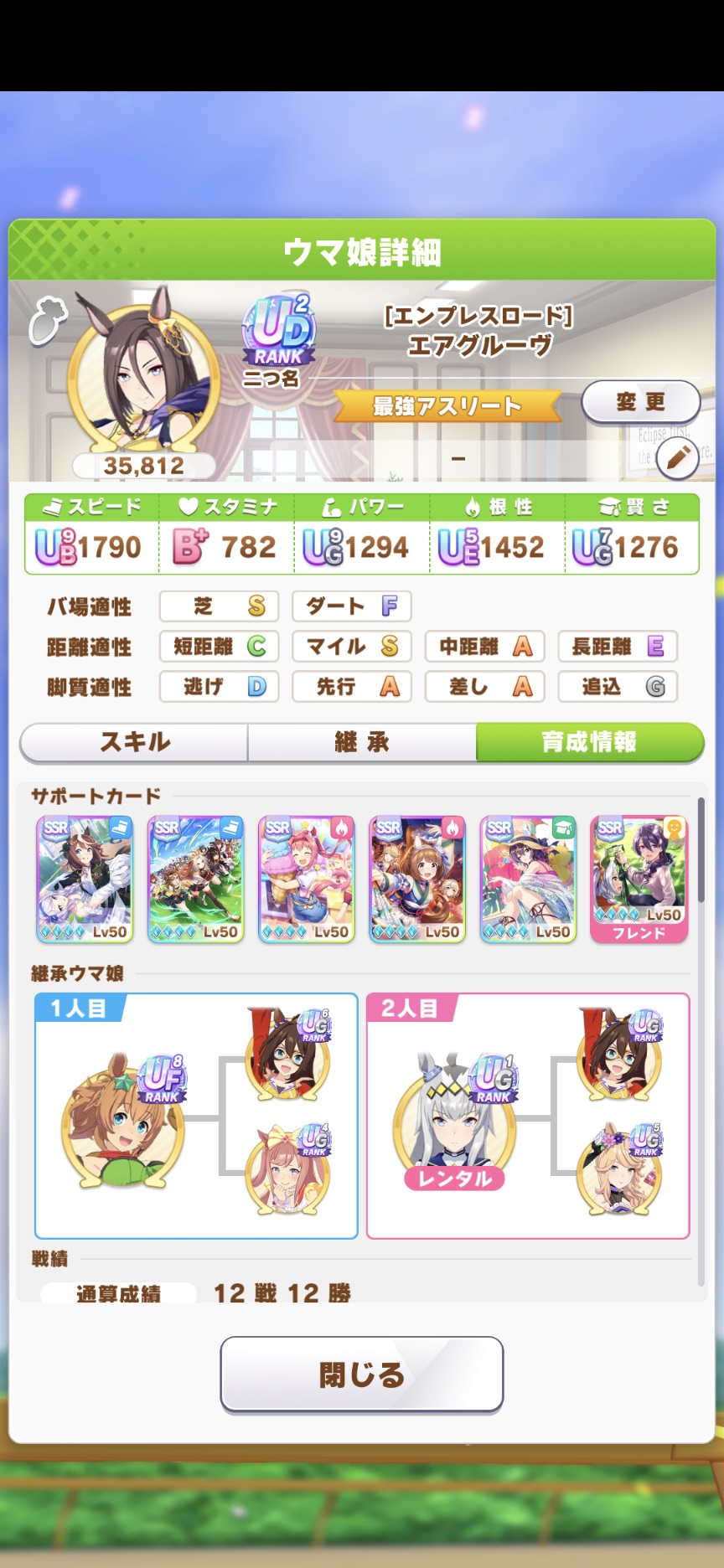 このシナリオサポカ完走は運だけどステはほんと理解力が反映されるわ