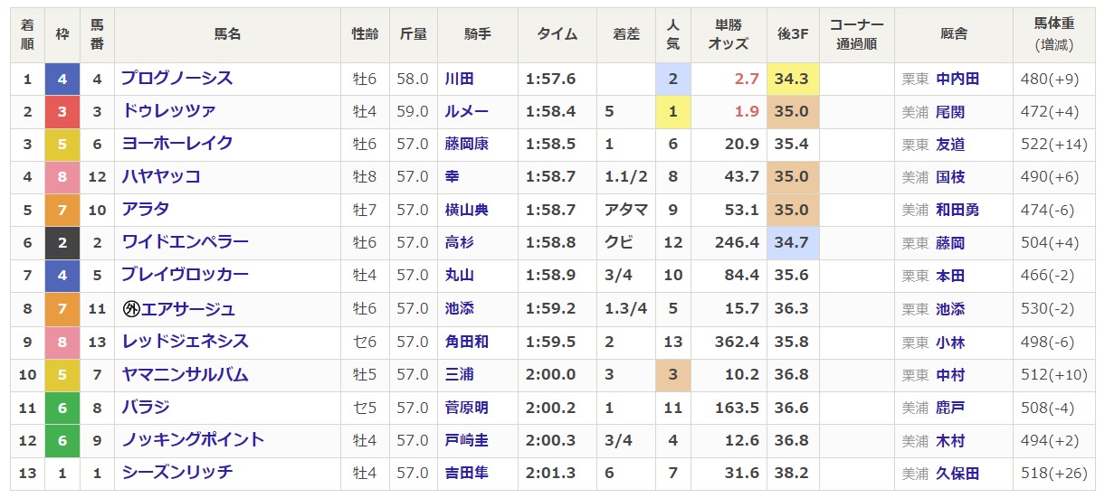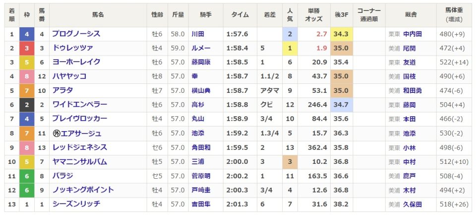 プログノーシスの上にジャスティンパレスがいてその上にドウデュース&スターズらがいるという…