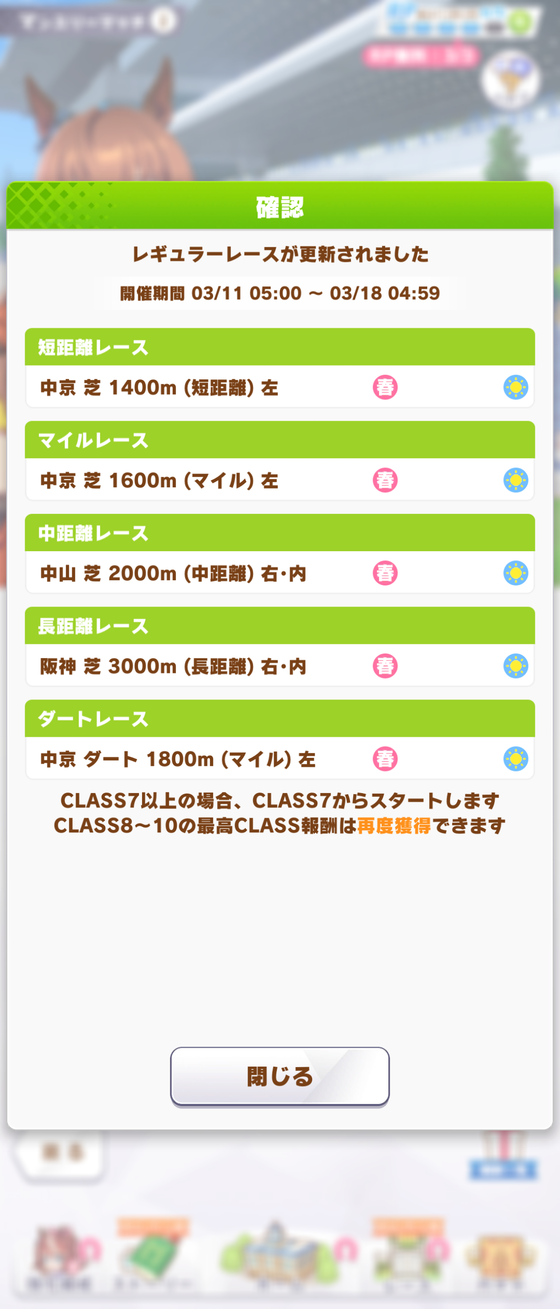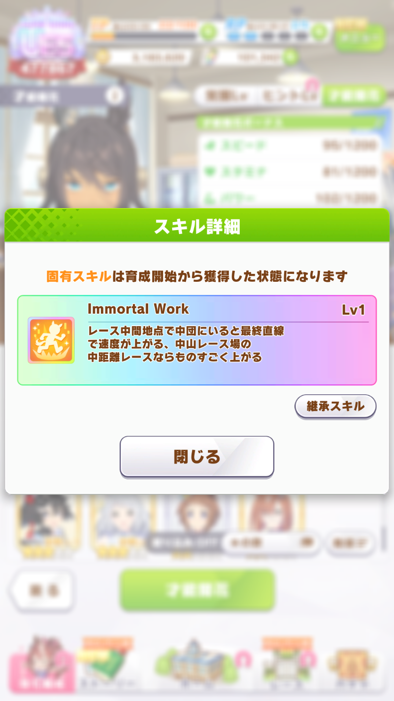 今週はどうするかなぁ、マイルもギア有効コースじゃなさそうだし育て直しだな
