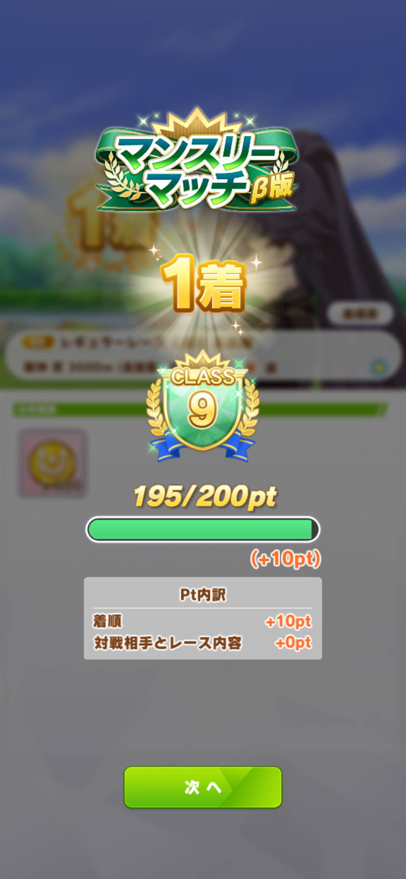 またクラス上げ直すの地味に大変やな。よくわからんけど評価SSとかが混じってくると一着とれても15ptも貰えないし