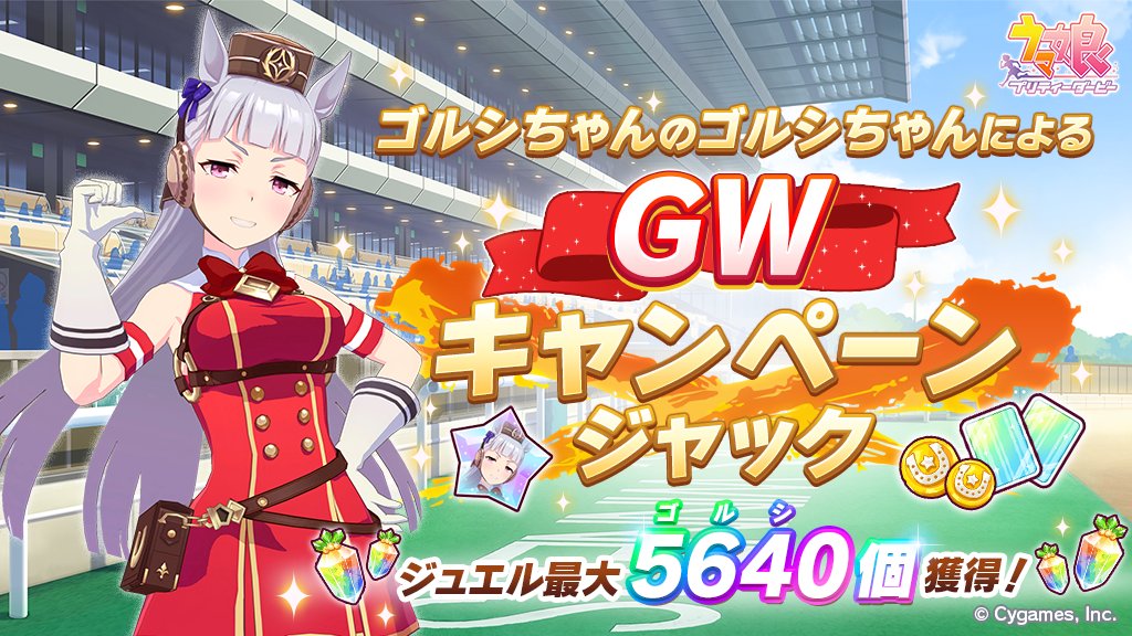 30連分の石配布は凄すぎる!あとピース!これでワイのゴルシちゃんにも勝負服を着せられる。