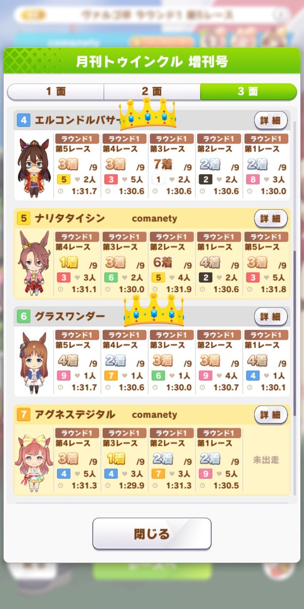 ヴァルゴ杯のレース前にチームメイトに興奮するも本番では圧勝するアグネスデジタルちゃんが出来た。豪脚→尊み→汝→鼓動→末脚コンボでゴボウ抜きしてく。