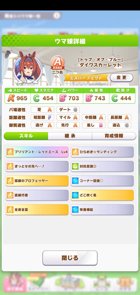 根性育成で作ったやつやっぱり弱いな。因子厳選するのには良さそうだけど。