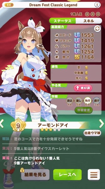 レースで最後なんで普通にスキル取れば勝てる勝てる。