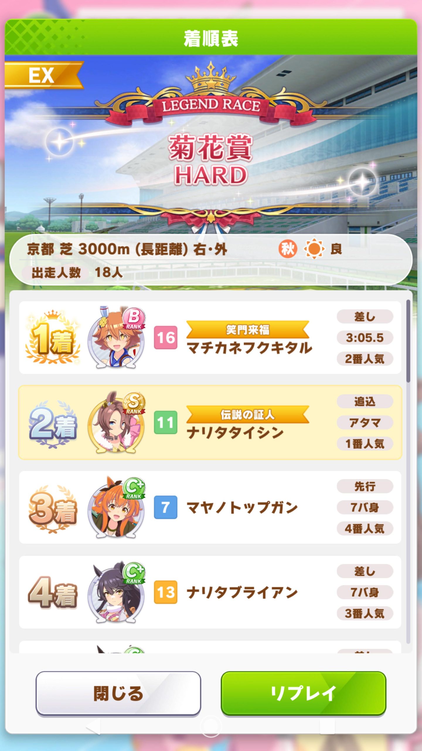 初戦だけリザルト見たけどライブラ用ゴルシで2馬身差でビビった