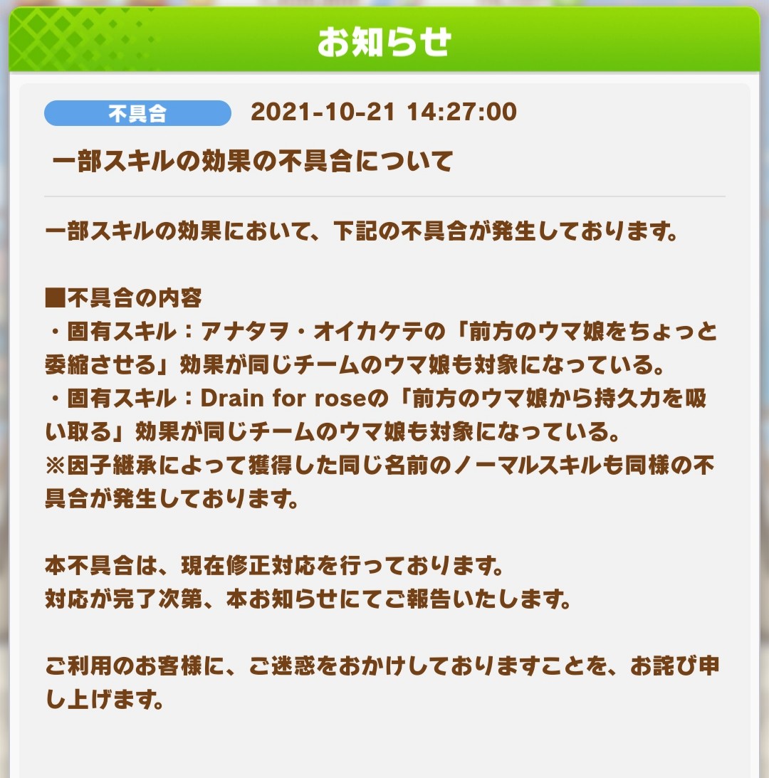 一部スキルの効果の不具合について 2021.10.21 14:27