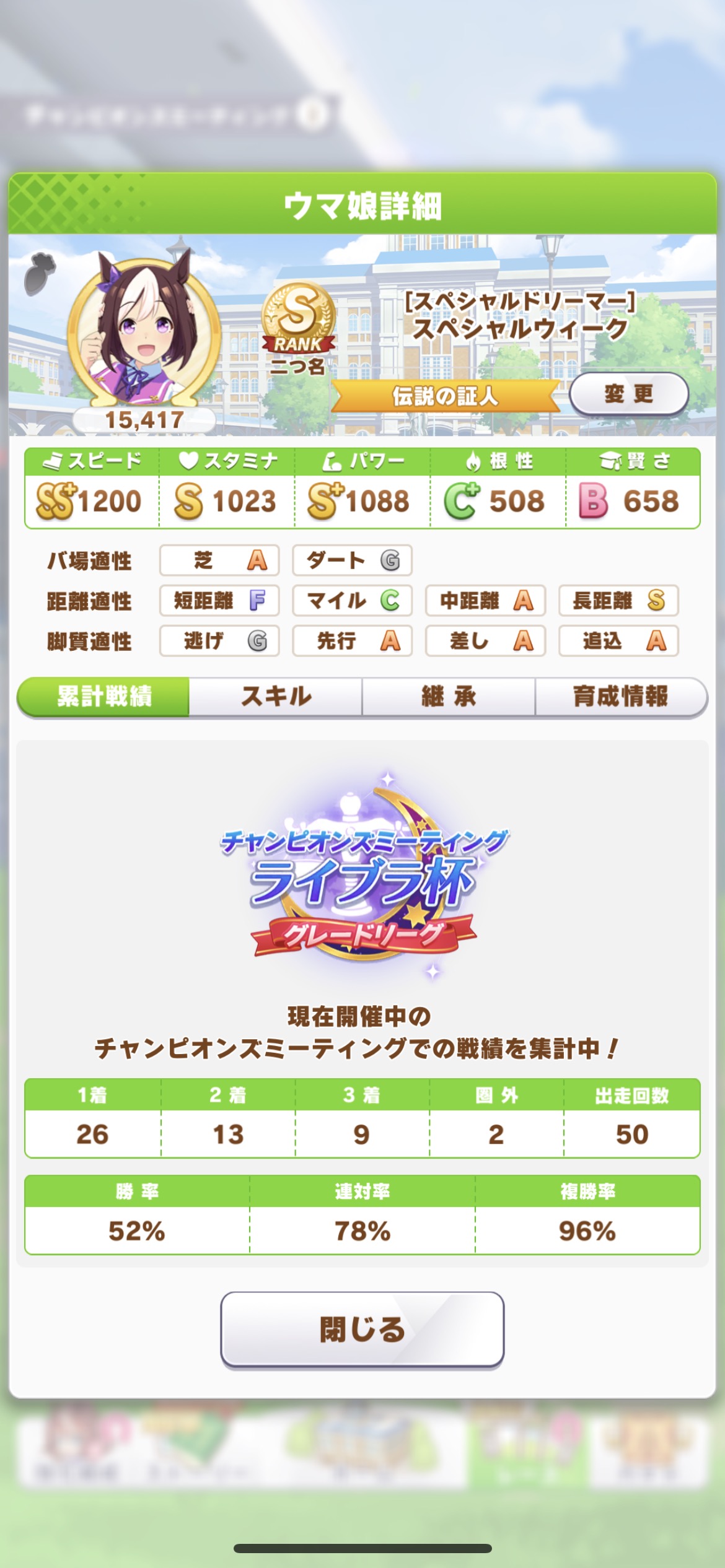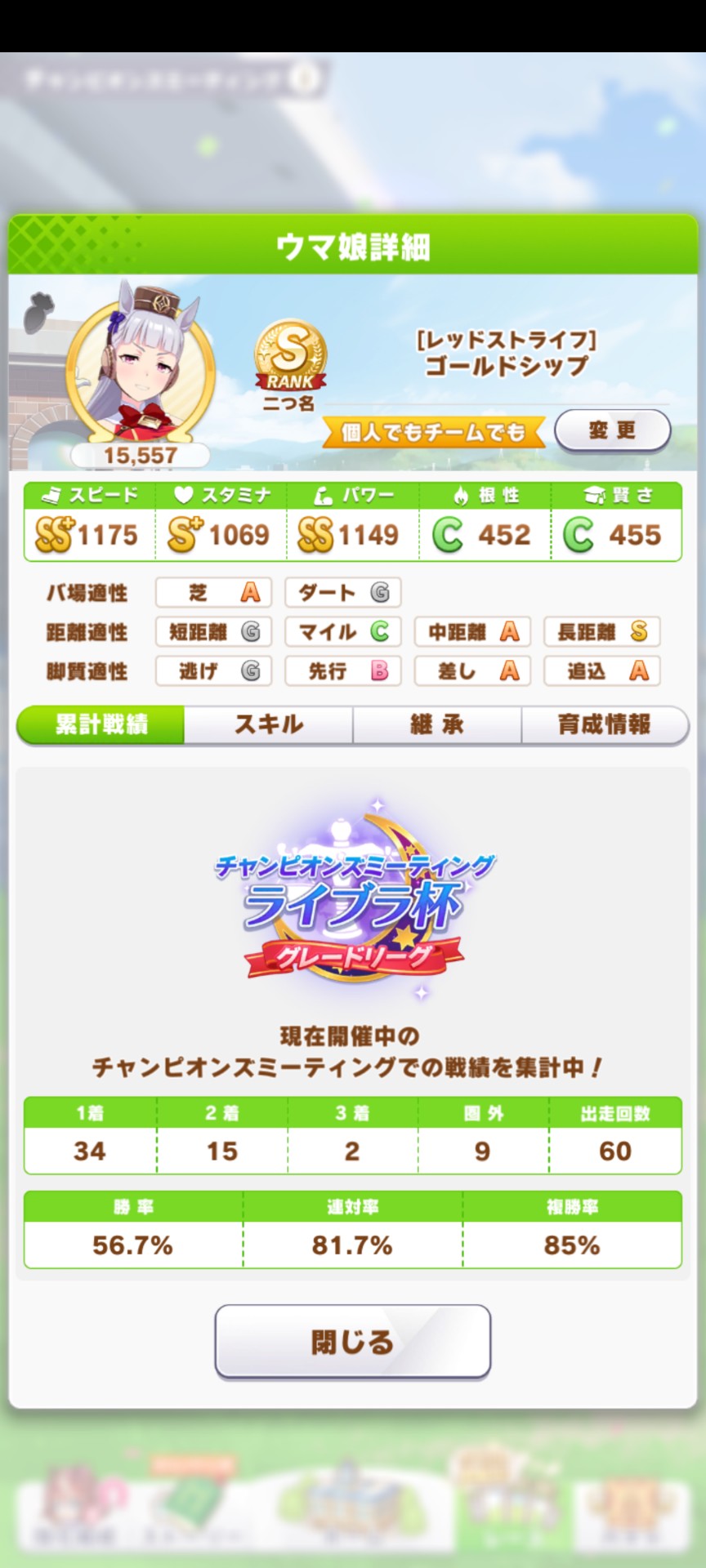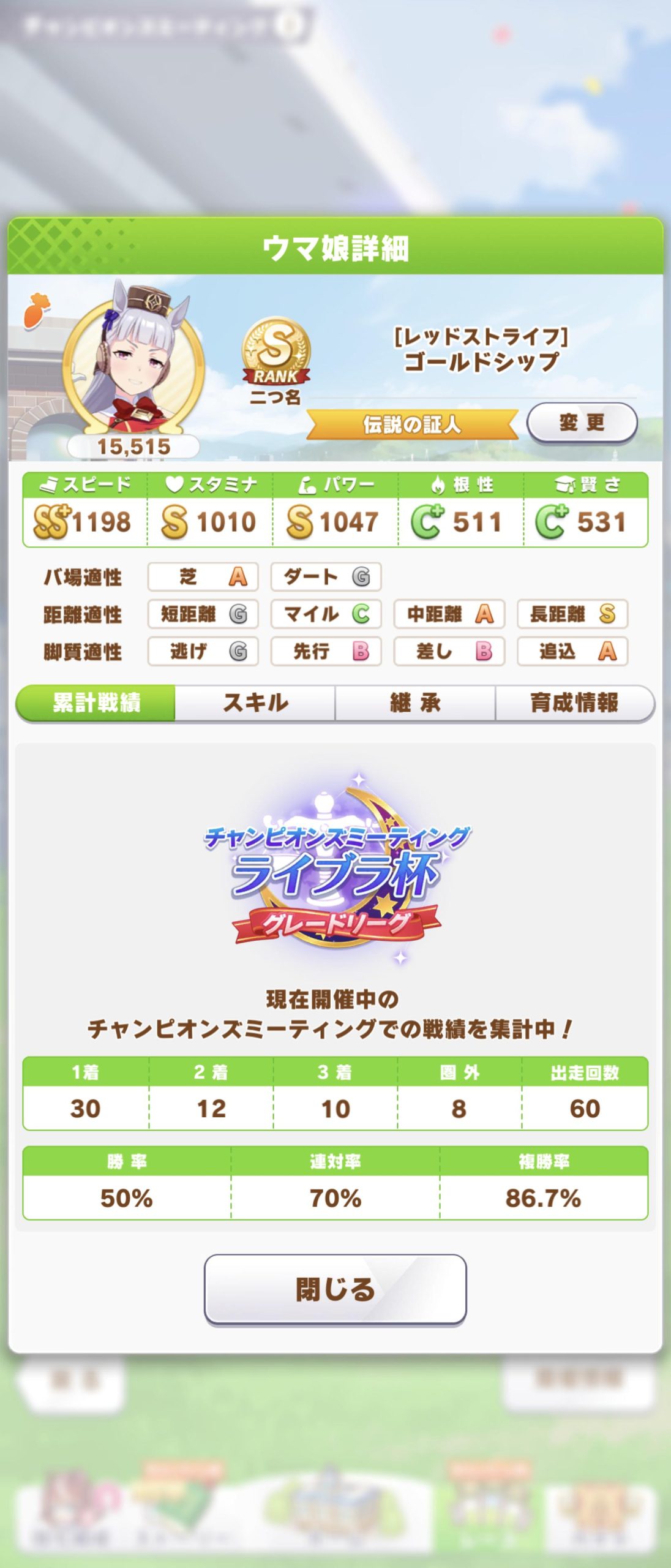 とかやったかなラウンド1で他のSゴルシやタイシンに勝てんくて下げ、差しカフェに変えた