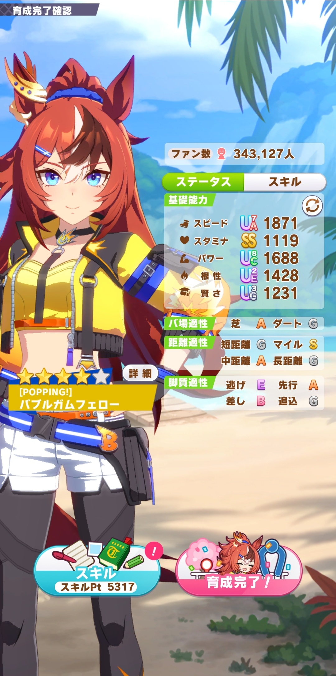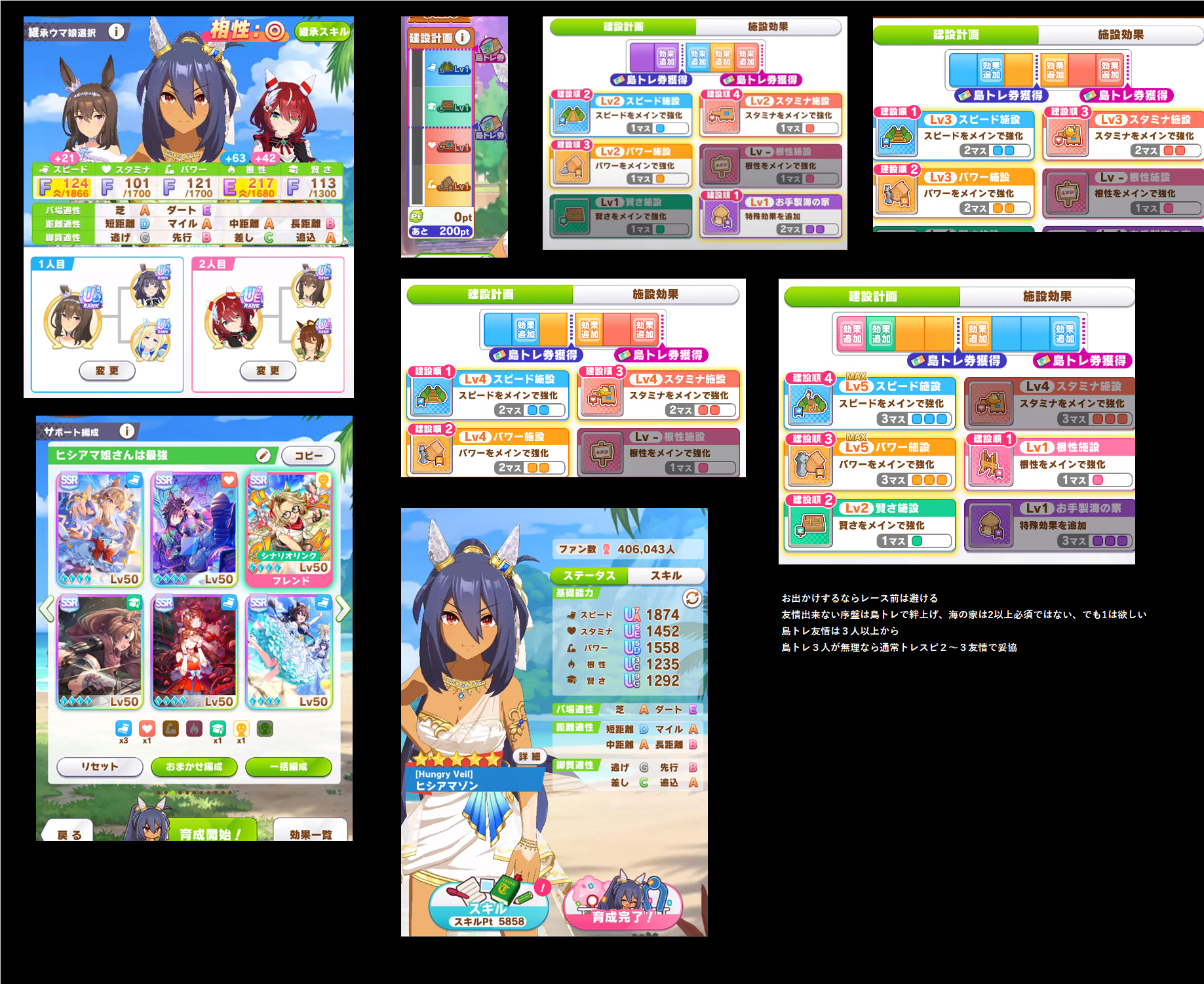 5. ダートローテの因子周回で最後まで大好評を取ろうとすると、海の家レベル3欲しいが、そもそも因子周回なら大好評が取れなくても問題ない、という考え方もできるんよな