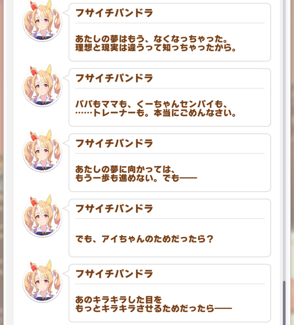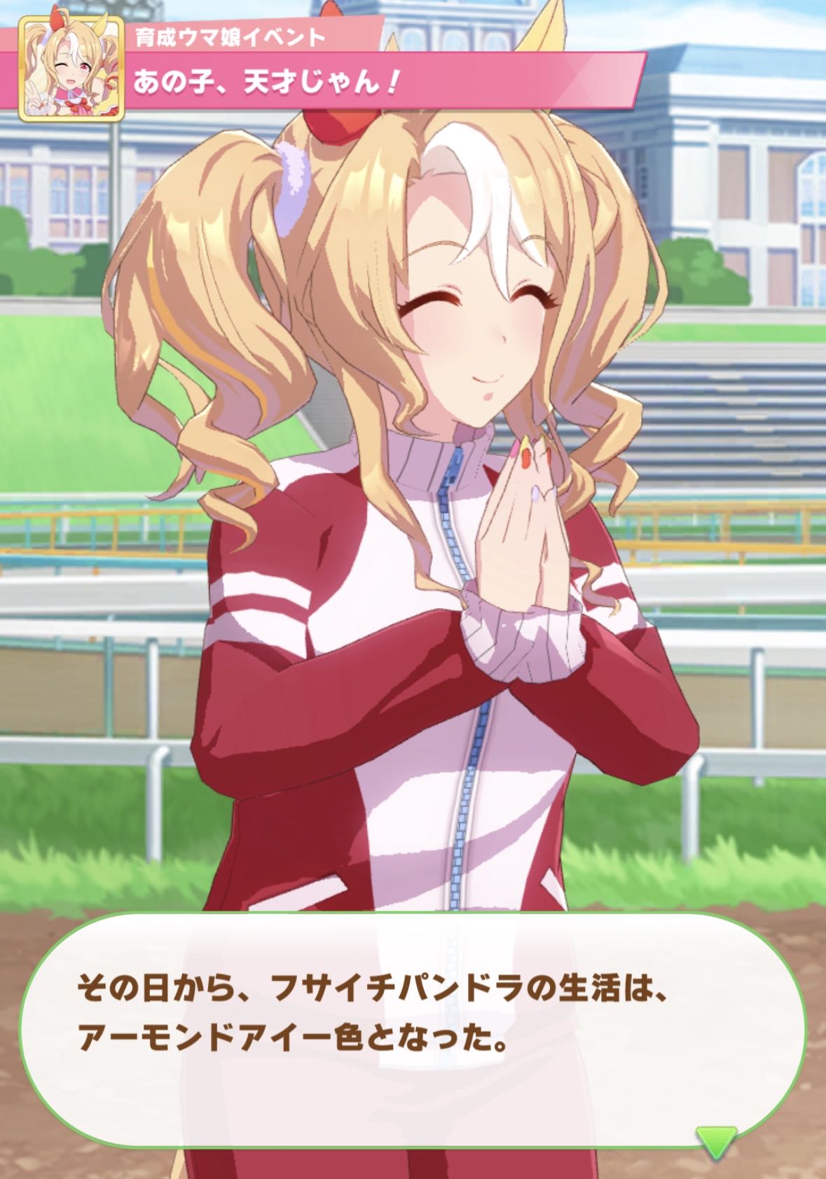 うちの母も私のライブに来て言っていました。「パンちゃんがステージに出てきただけで、涙が勝手にどわーっと出て止まらない」と。まさにこれだ。同じですよね?私はアーモンドアイの母で、つまり私は…フサイチパンドラ…??ん?