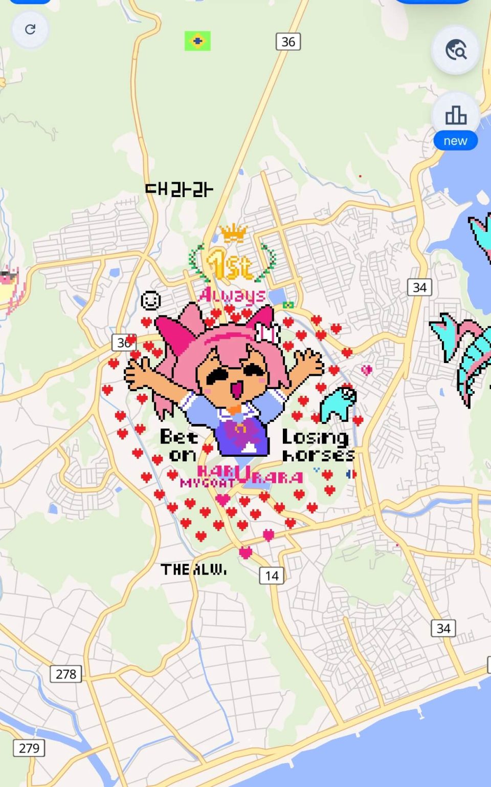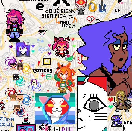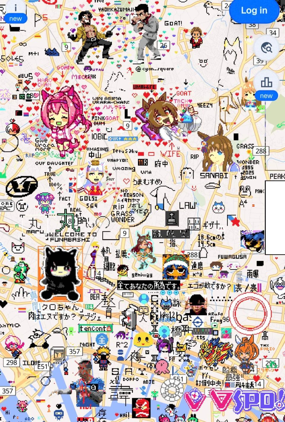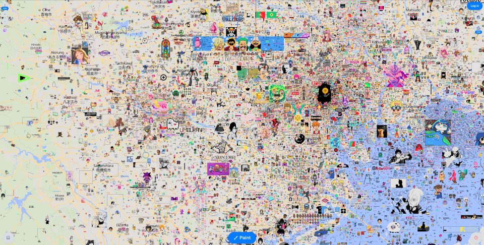 リアルタイムで更新されており、地図上に描き込まれた他人の作品を見ることもできる。背景地図にはOpenStreetMapを使用している。