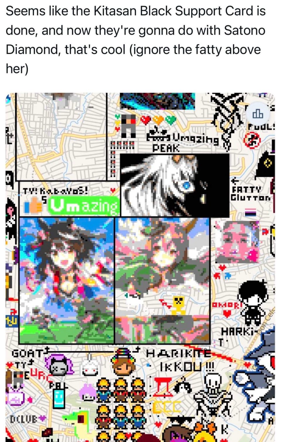キタサンブラックのサポートカードが完成したみたいで、次はサトノダイヤモンドをやるんだって、かっこいいね(彼女の上のデブは無視して)