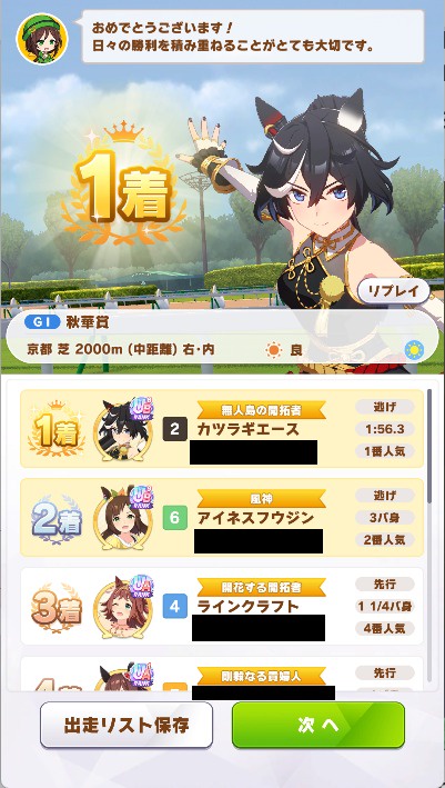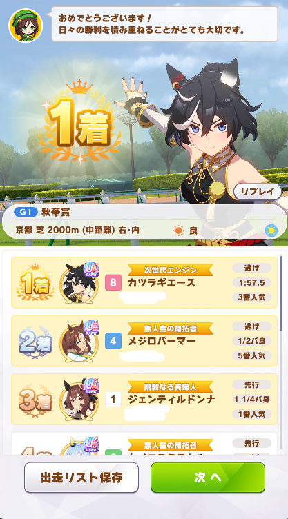 宝塚は逃げ3で勝てたけどデバフつきの環境キャラから逃げ切れる気はしないな
