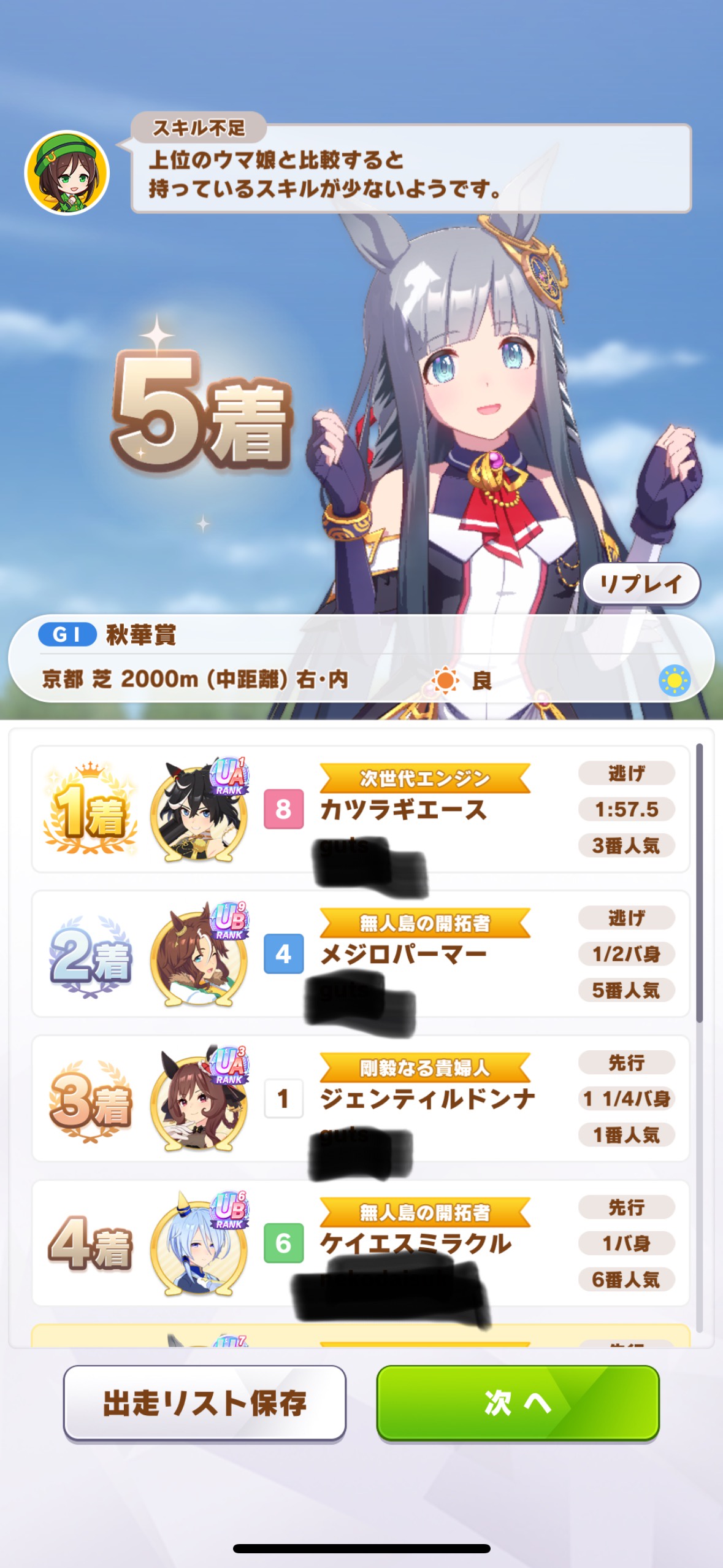 若干大逃げが弱いし、デバフで底上げされたオルフェやラヴから逃げ切れるかが野良ルムマ回して感じる課題