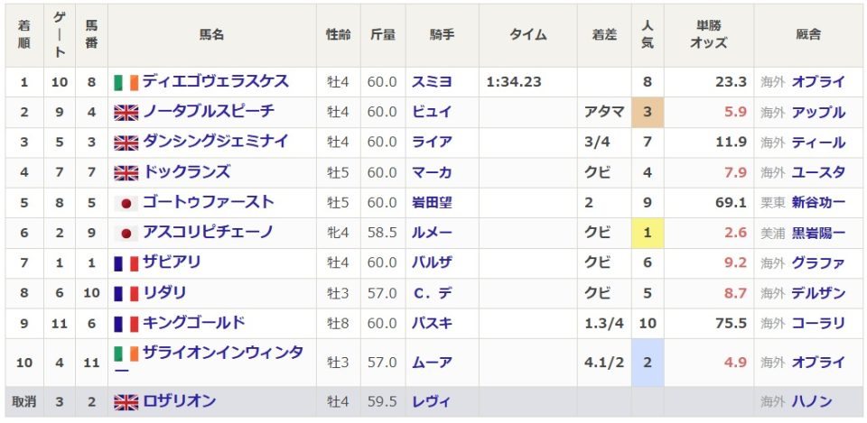 近走振るわんとはいえ現地ですらノータブルスピーチやら押しのけて一番人気だったのは流石に謎やったな