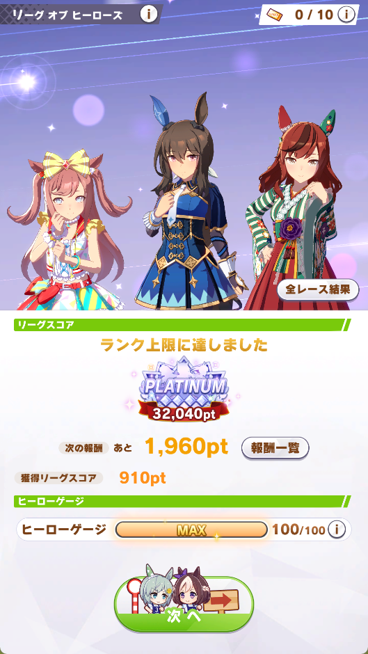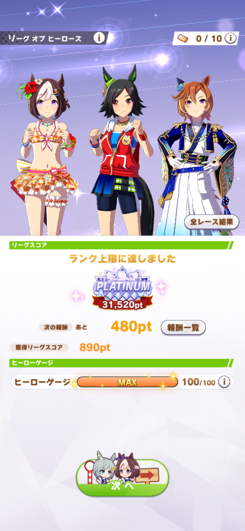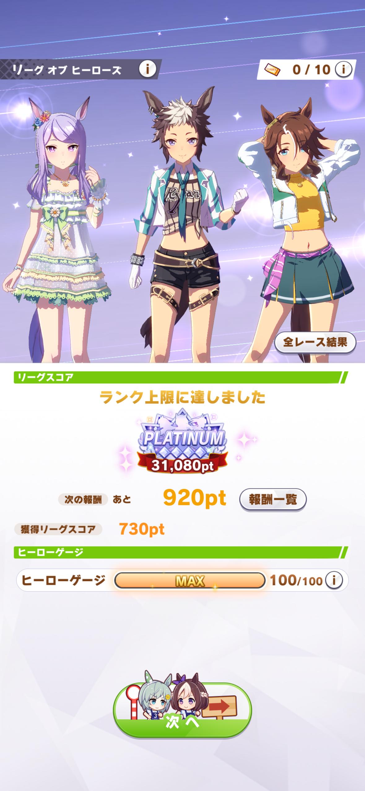 途中まで逃げ2追込1、4日目から逃げ2と水着シュバちで31500pt
