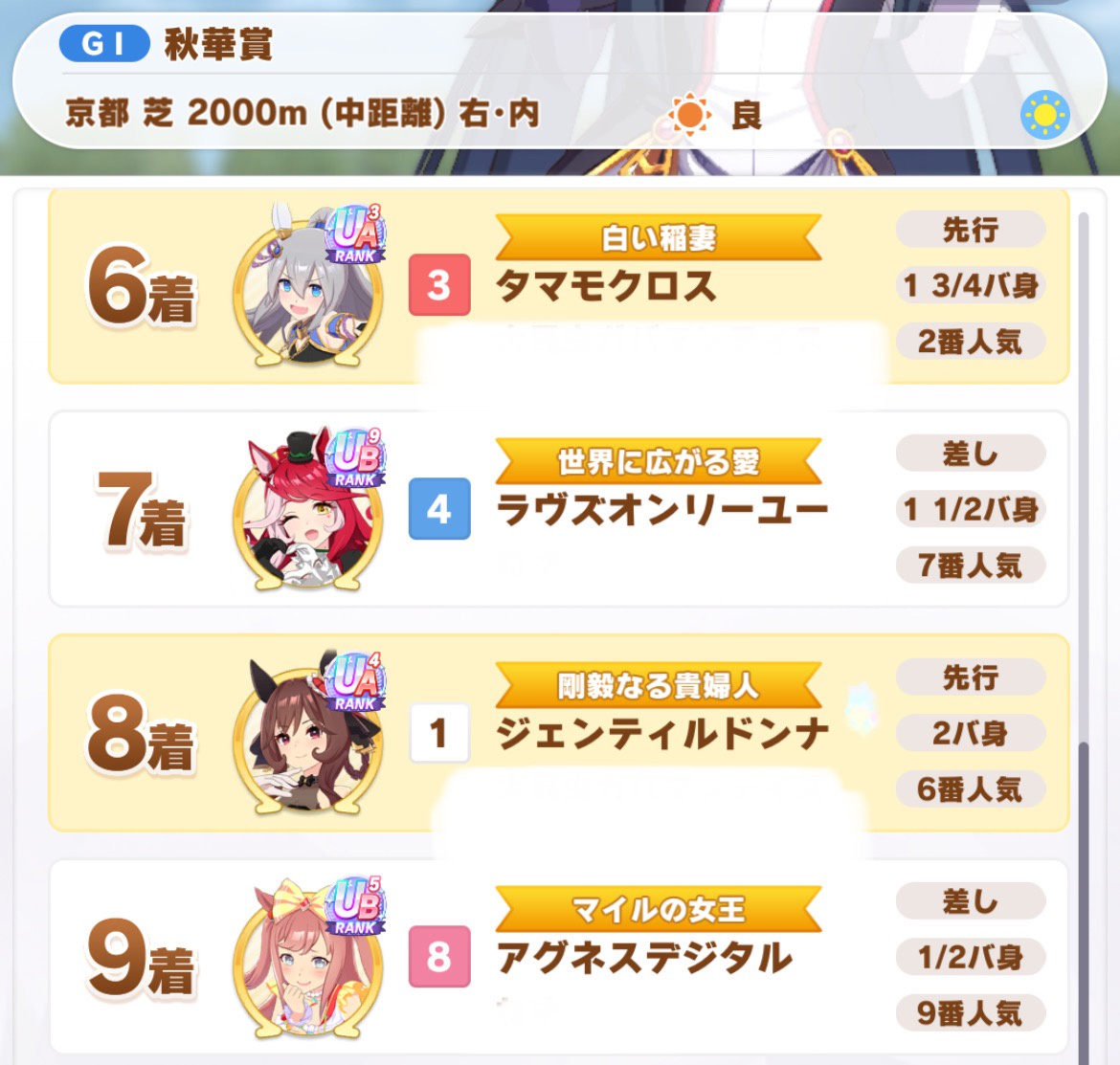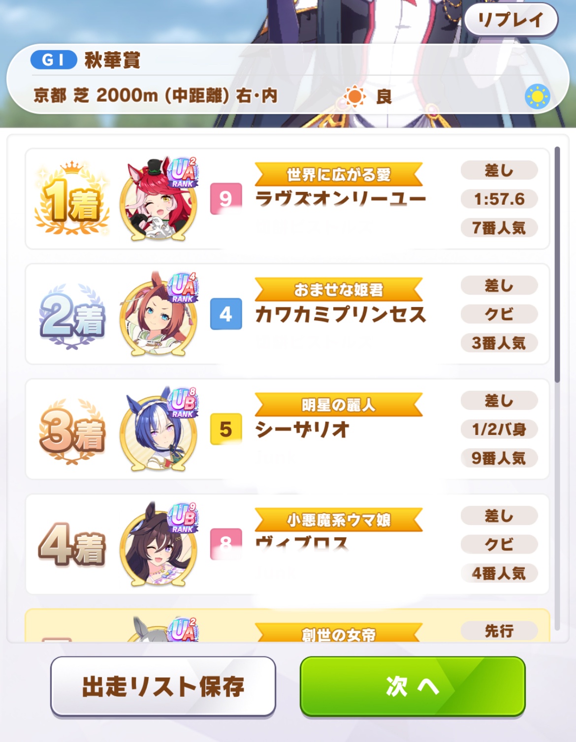 4. 差しで咲け咲け出せたら勝確だけど割とギャンブル的な所もあるし先行も大逃げが欲しいけど自分で出すのはリスキー(単純に相手のアシストになりえる)