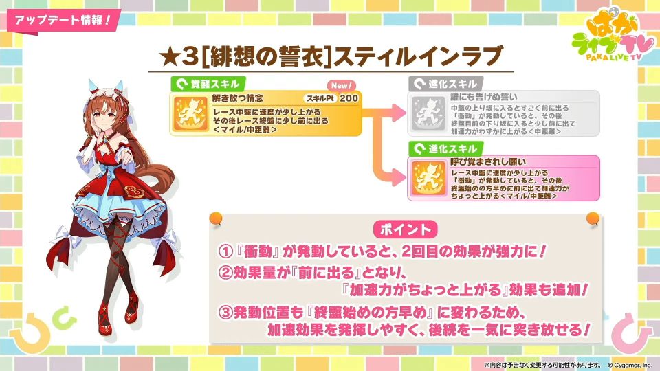 スティルインラブって最近のアニバーサリーで実装されてきたウマ娘と比べると2枚くらい格落ちだよな