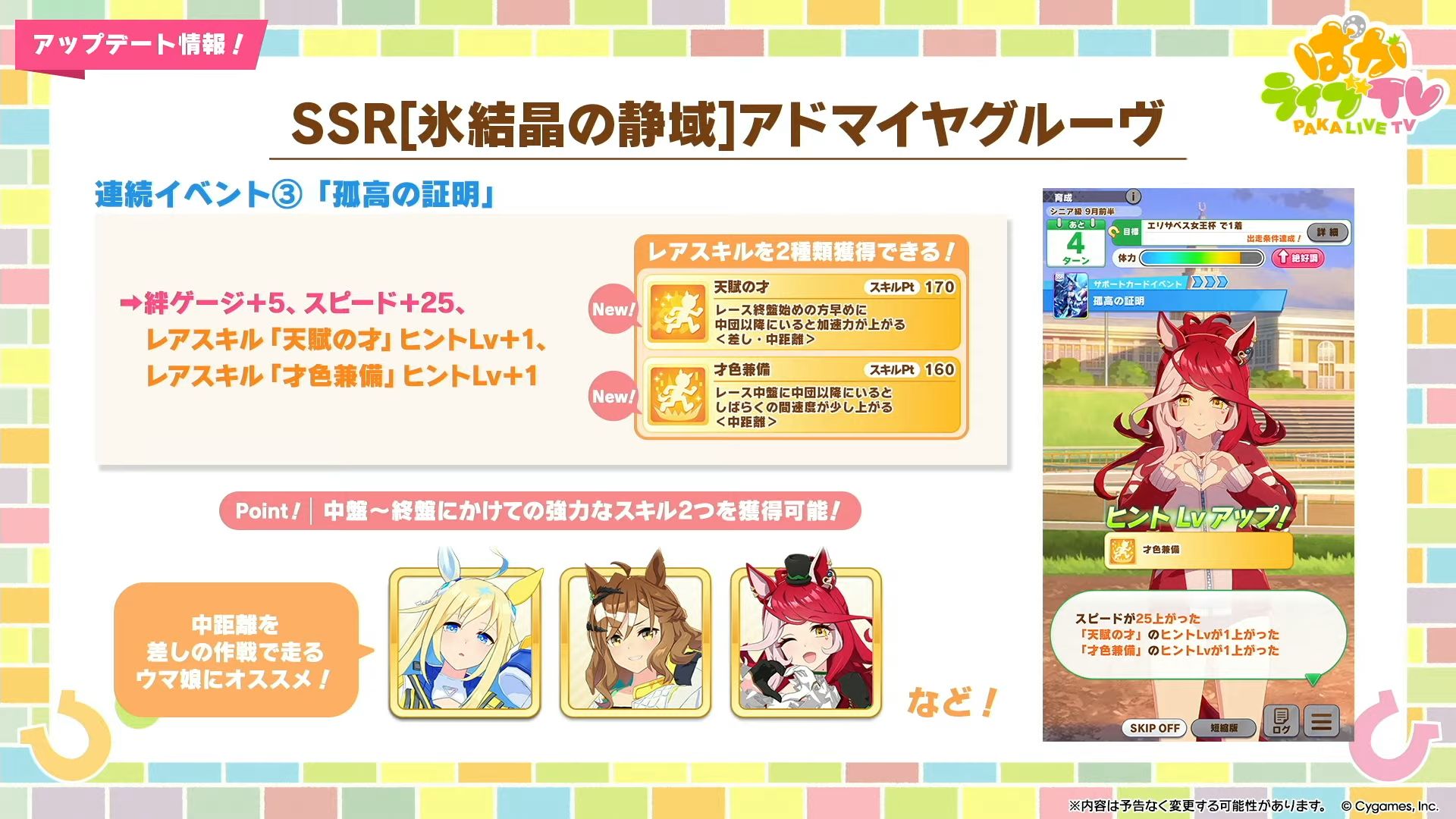 スキルについても中距離だったら何個か白増えるけど、汎用だからアモアイタマルドルフの汎用カードとの被りが多い。金スキル2つは強いけどそれに騙されてると思う。