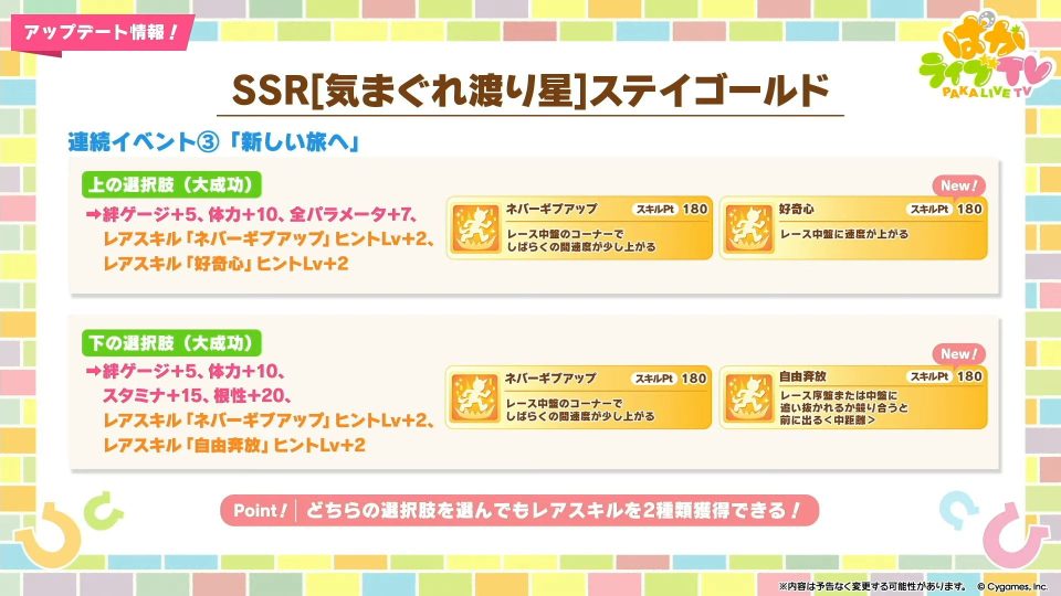 • スティルサポ使えないスティル育成用って感じかね?なんにせよステゴ目当てのおまけで付いてくるなら悪くない