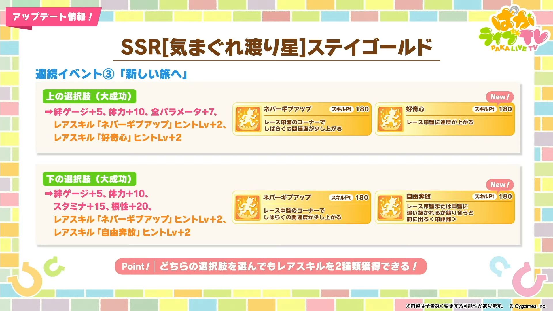 • トレ性能は獲得スキポにも影響するし、無人島はアッパー入ったからこうなってるだけで次シナリオがどうかは分からんぞ←ただの妄想、現実スキルポが多く稼げる