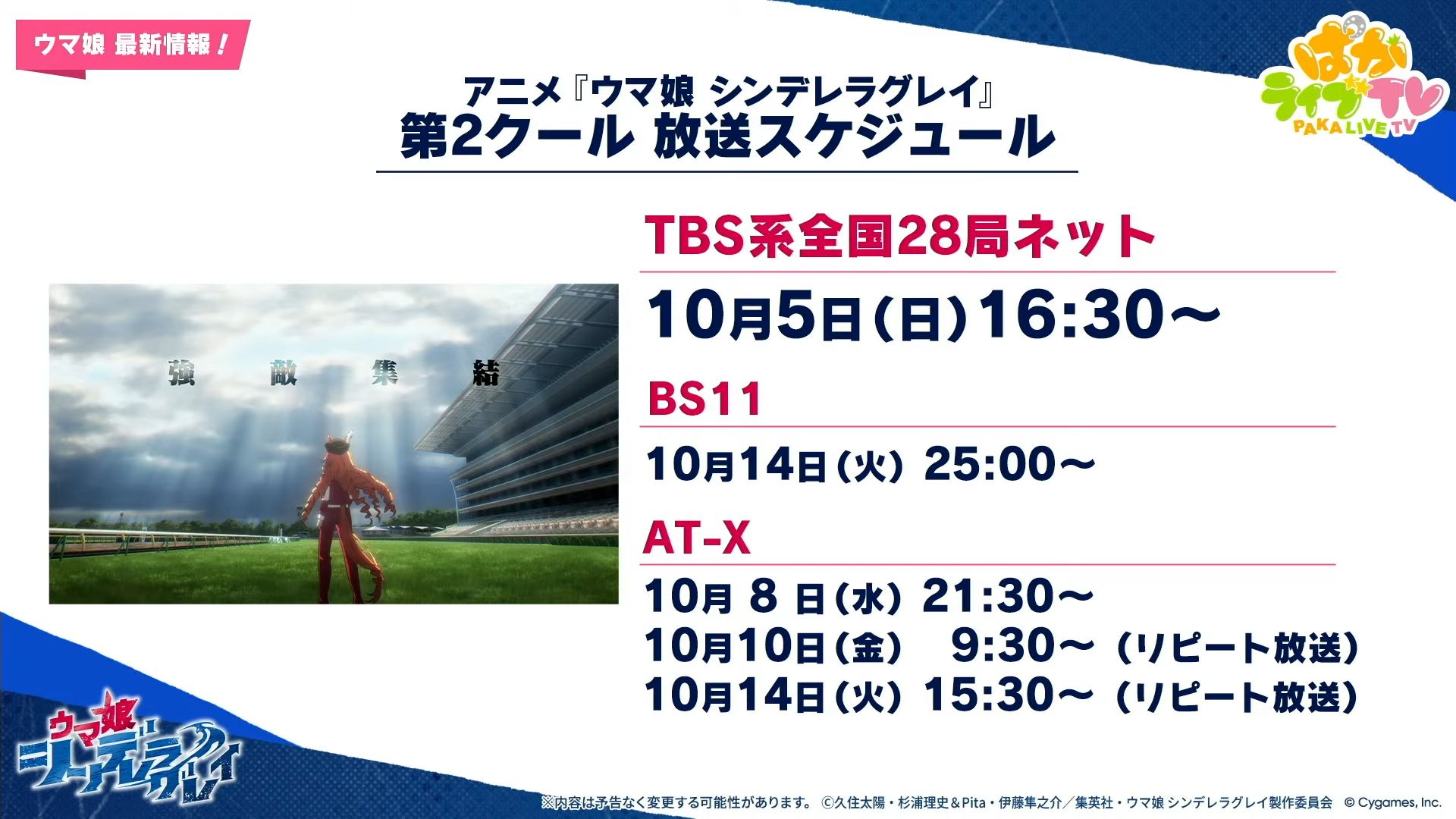 【ウマ娘】アニメ『シンデレラグレイ』第2クールは10/5(日)から開始!追加キャストも発表!