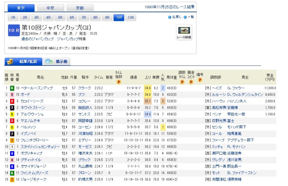 4. お手馬で将来ウマ娘になりそうな子がいるかなと調べてみたら、ツインターボのオールカマーでハシルショウグンに乗ってたのが的場さんだったの初めて知った。2・3着がダブル的場だったのか・・・