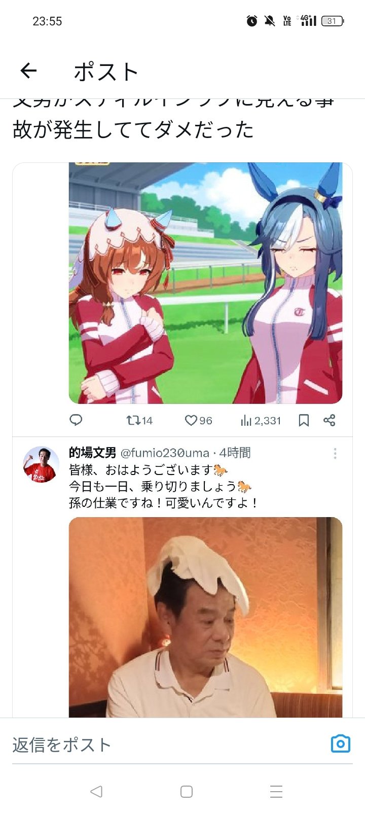 誰かが呟いた「的場のこの写真がウマ娘のスティルみたい」ってネタに乗っかった