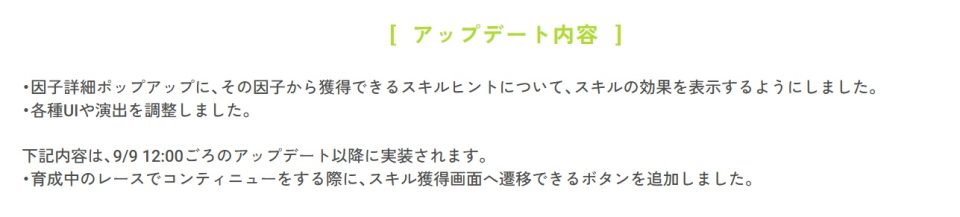 あとスキル因子押したらスキルの説明表示されるのも良アプデ