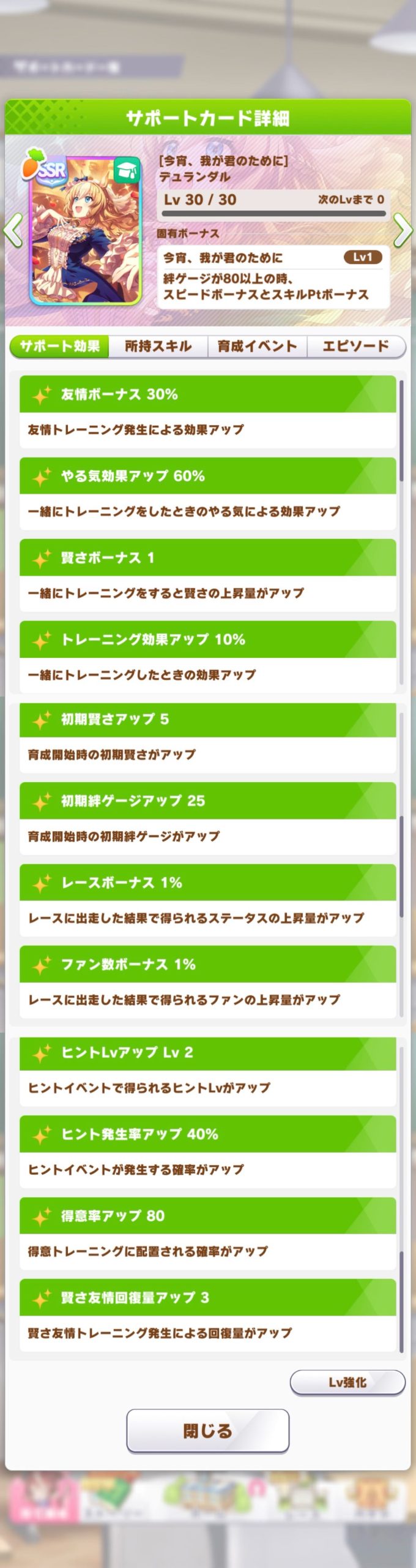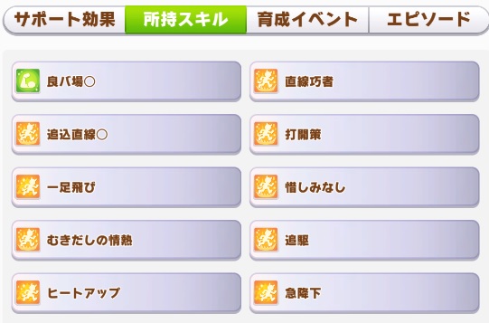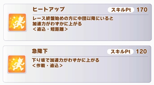 急降下まで取れたら実質今回のコースでのスティルのアドはデアタクなどの強いサポを使える所しか無くなるんやない?まあ追込サポは相変わらず弱いからそれを作るの大変なんだけど