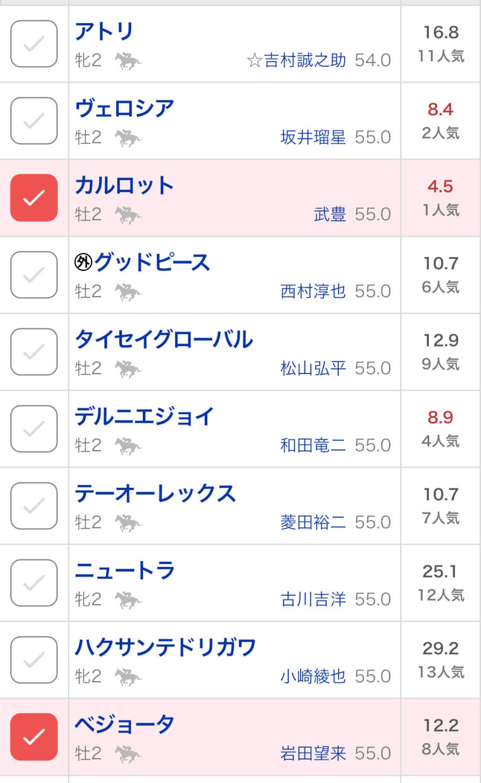 なんかどっちも惜しいなぁカルロットとベジョータって子が同じ新馬戦走るんかよ