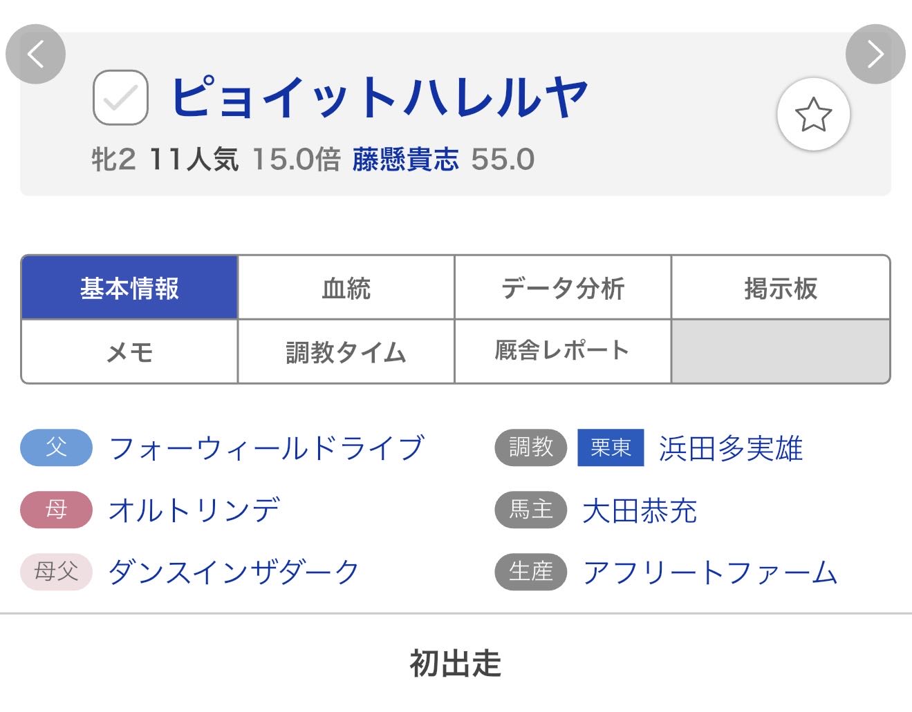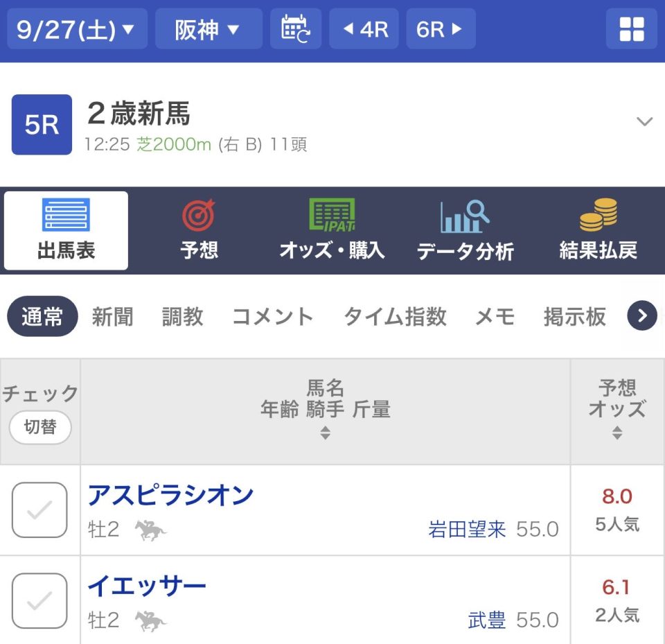 日曜日阪神5Rでデビュー