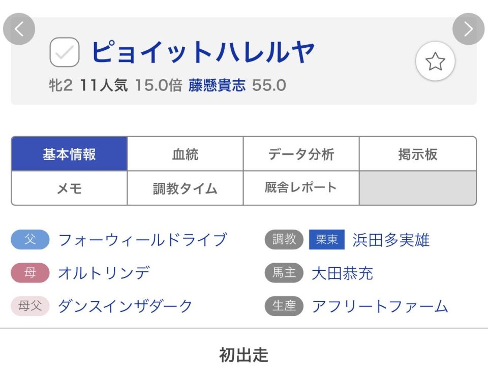 【競馬】9/28 阪神5Rで『ピョイットハレルヤ』がデビュー!