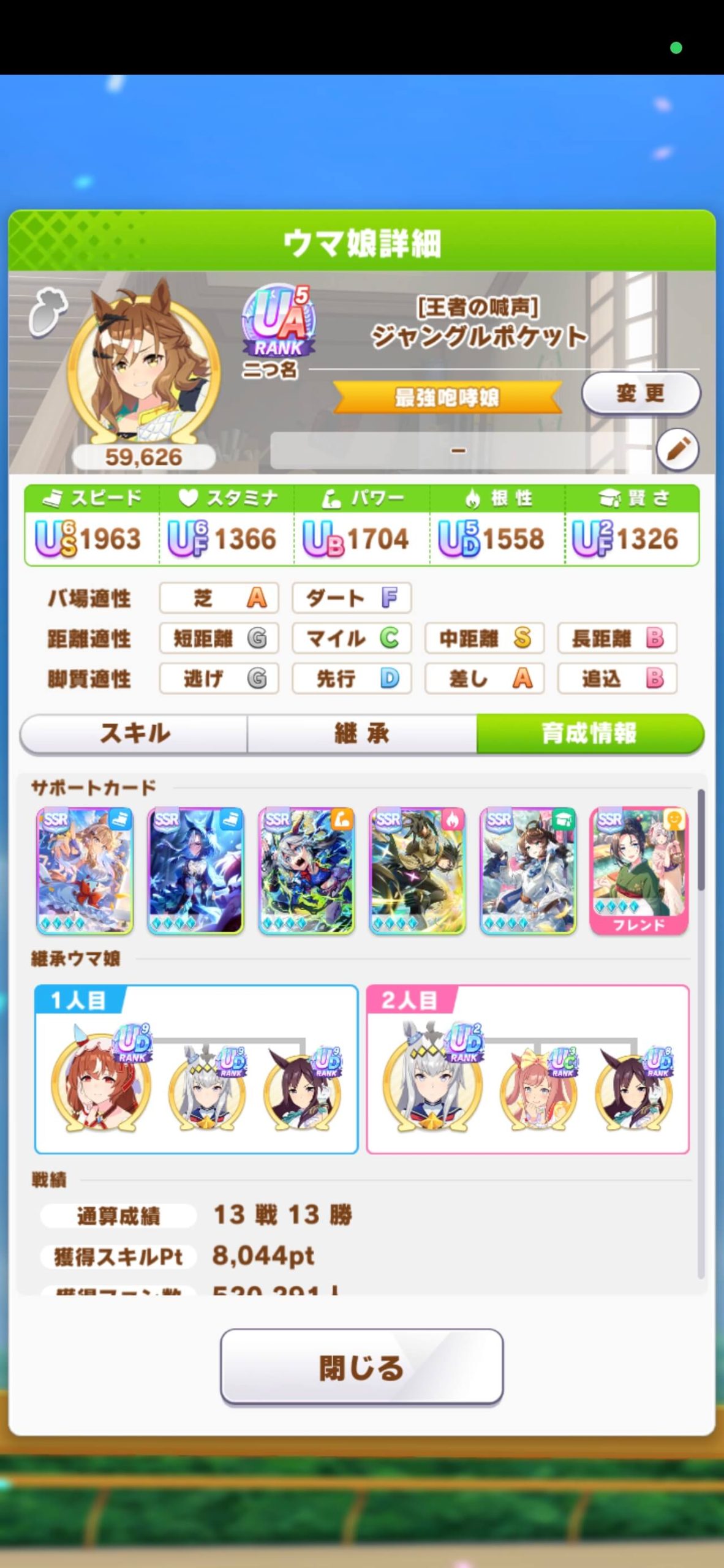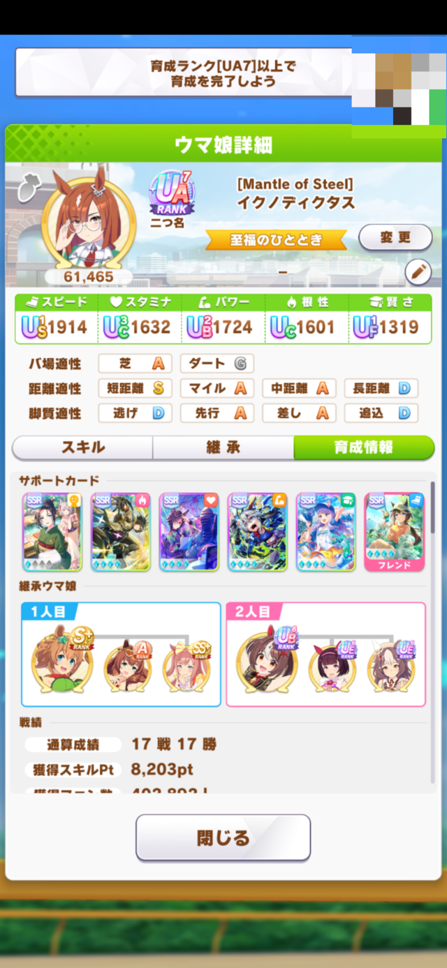 オグリキャップとアグネスデジタルみたいなシニア以降に野良レース出る事が目標にあるキャラは少し不利だねぇ