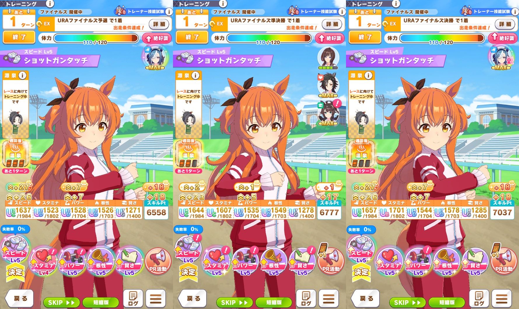 スピ1でカンスト狙うとスタミナどころか根性も不足気味になるしよく分からん