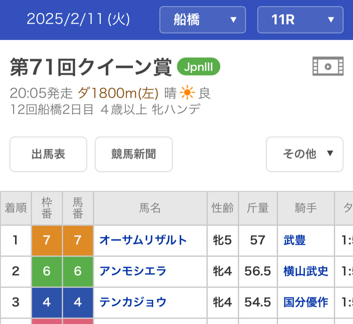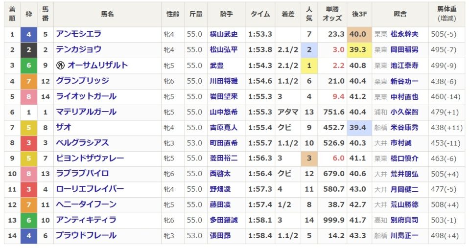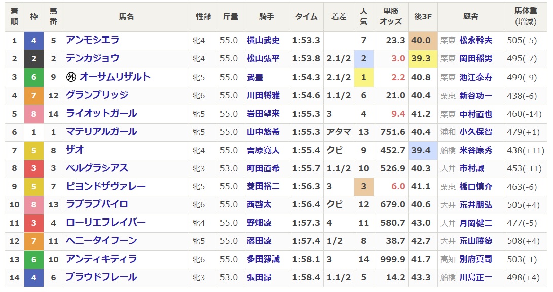アンモシエラおめでとう!逃げ切るとは オーサムリザルトはいい位置にいたけど伸びんかったな
