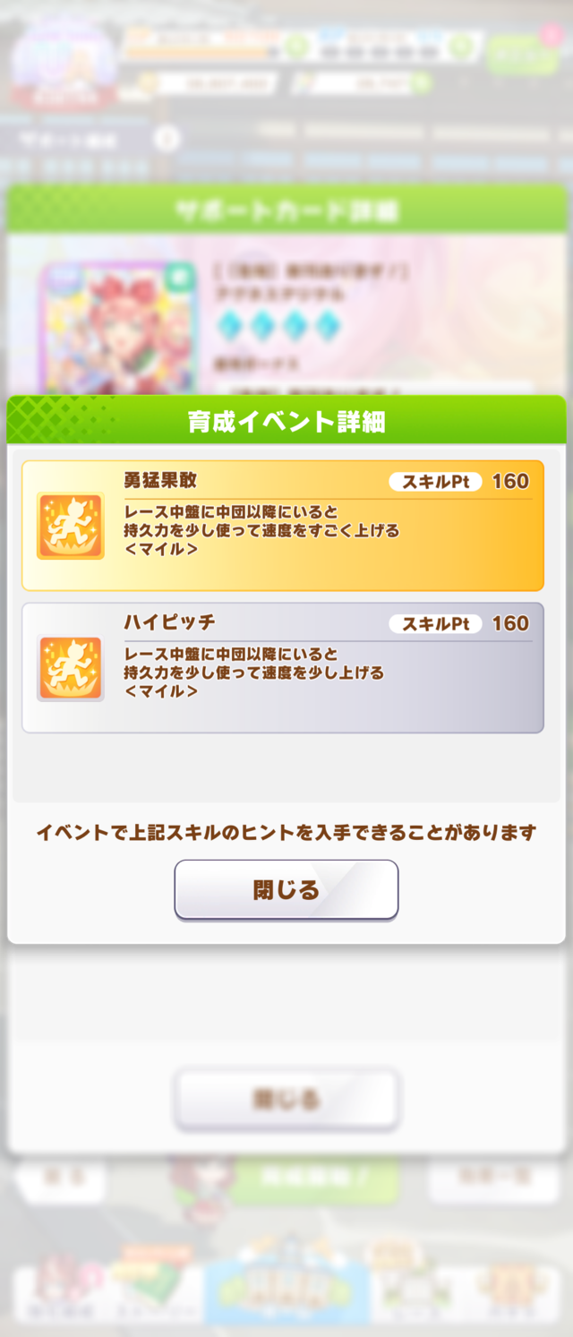 フジキに右秋にハイピッチやフルスロに真髄4種ついてる神因子見つけたからわざわざ借りなくてもいいや