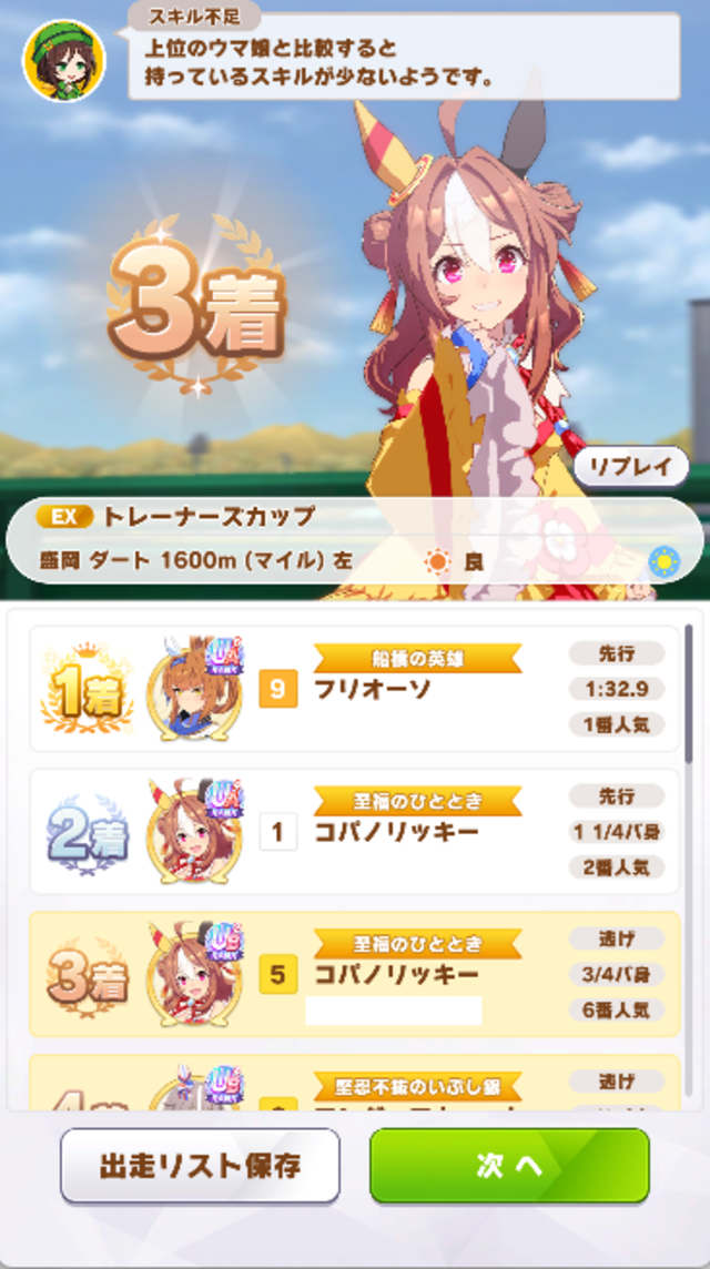 そもそも序盤スキル皆無組(アキュートは競り合えば満たせる)で逃げ3とか意味不明なんだが
