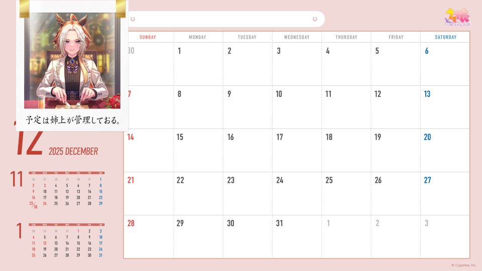 オルフェーヴルが記入していない12月のカレンダーを特別に公開!