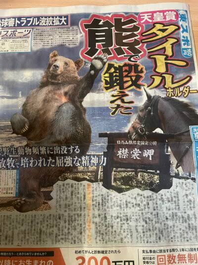 これを育んだのがオカダスタッドえりも分場(北海道えりも町)だ。デビューから5戦無敗で牝馬3冠を制したデアリングタクトも過ごしたこの地は、年中強い風が吹きつけるだけでなく、時にクマやアライグマ、エゾシカの群れなどが出没する。
