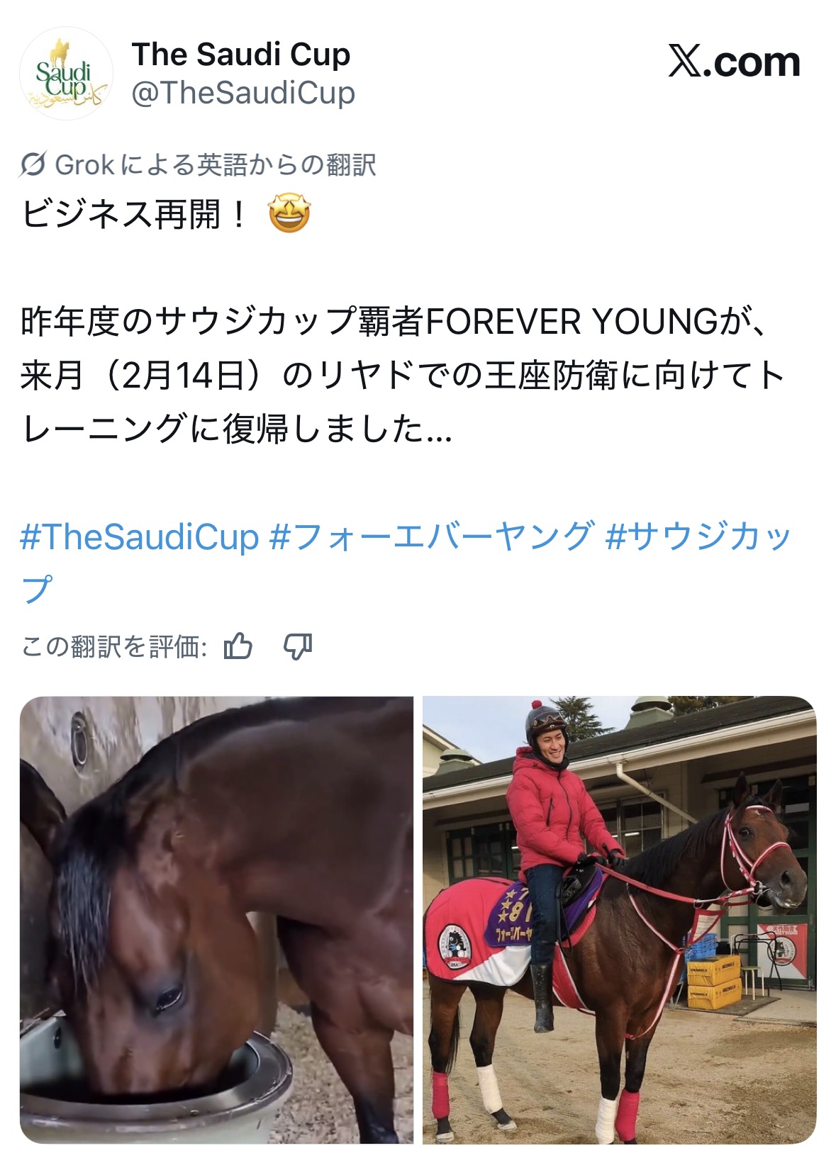 Congratulations to Saudi Cup champion FOREVER YOUNG on being crowned JRA Horse of the Year — becoming the first dirt horse to earn Japan’s top accolade.#TheSaudiCup #フォーエバーヤング pic.twitter.com/YZd1vgCkOv