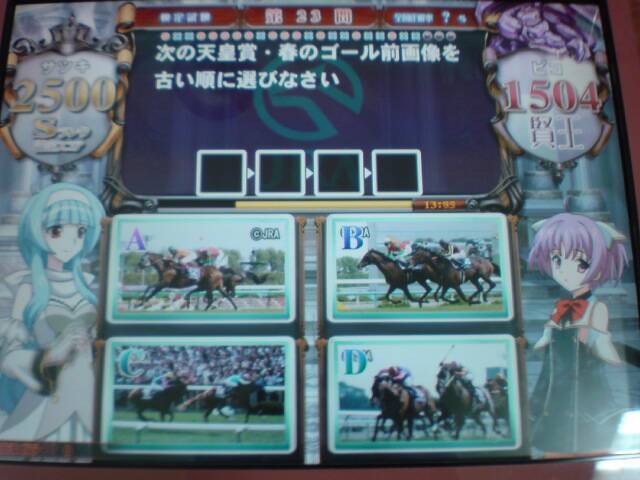 D(メイショウサムソン)→C(アドマイヤジュピタ)→B(マイネルキッツ)→A(ジャガーメイル)