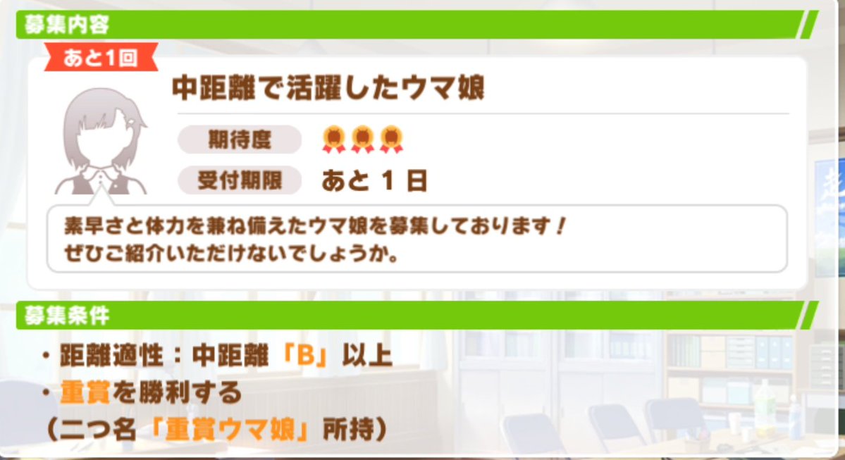 前回までは、ミークの適性じゃない脚質(逃げ)募集してたのに