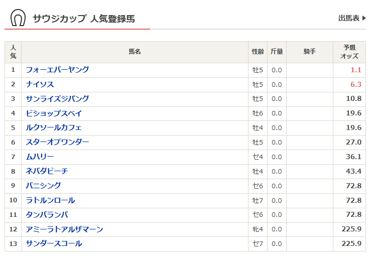 サウジカップ予想オッズ