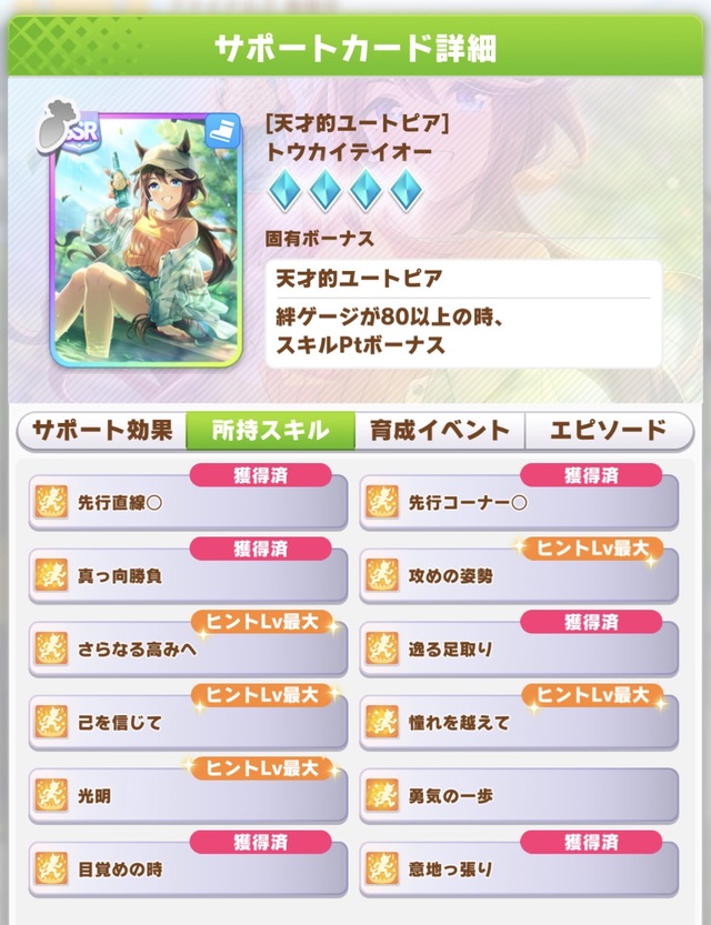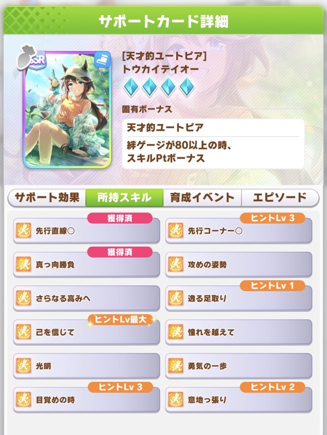 3. ヒント無いだけでスキポ100余分に持ってかれるから上振れても普通の育成結果と同じになるんよね