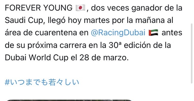 今年のドバイワールドカップの開催地がメイダン競馬場だから藤田オーナーが場所が遠いから諸々の出費がいつもより多くて嫌がってたから今年のドバイには出ない方向性じゃなかったっけ?