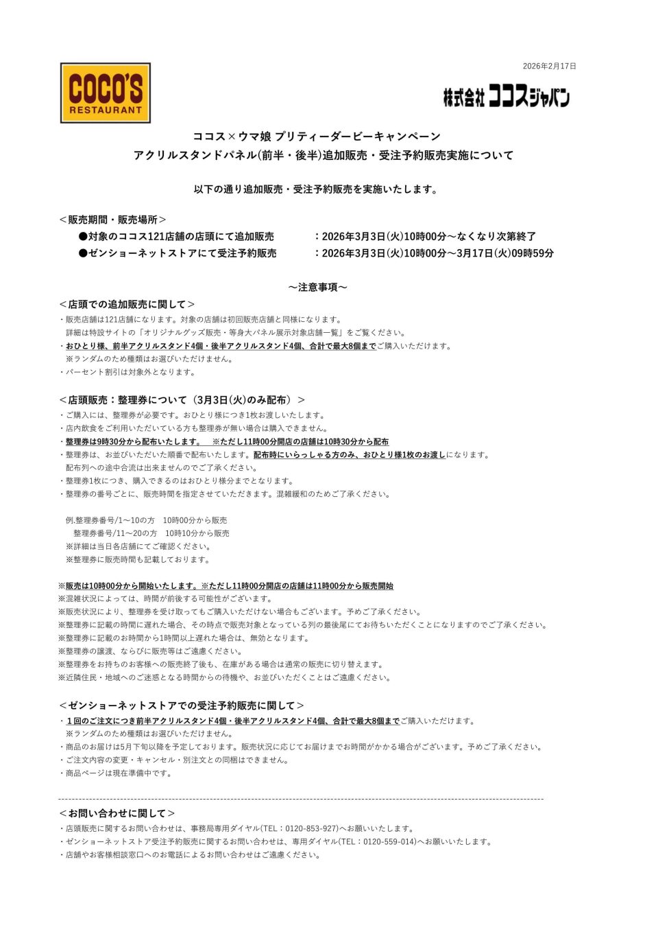 — ココス【公式】 (@cocos_campaign) February 17, 2026