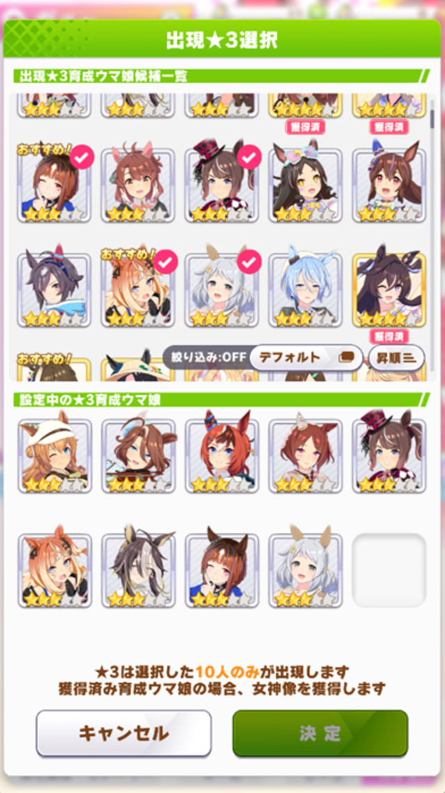 因子周回候補:水着クラウン、フサパン(前半速度継承)、新衣装リッキー(コーレス起動継承)