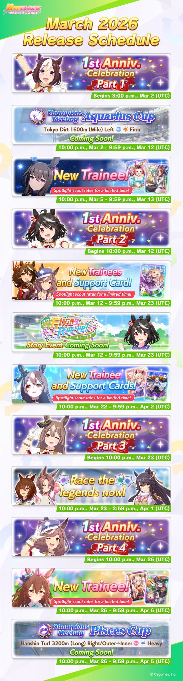📅 March's Release Schedule is here, Trainers! Here's what you can look forward to this month.#Umamusume pic.twitter.com/QMzzp6c39w